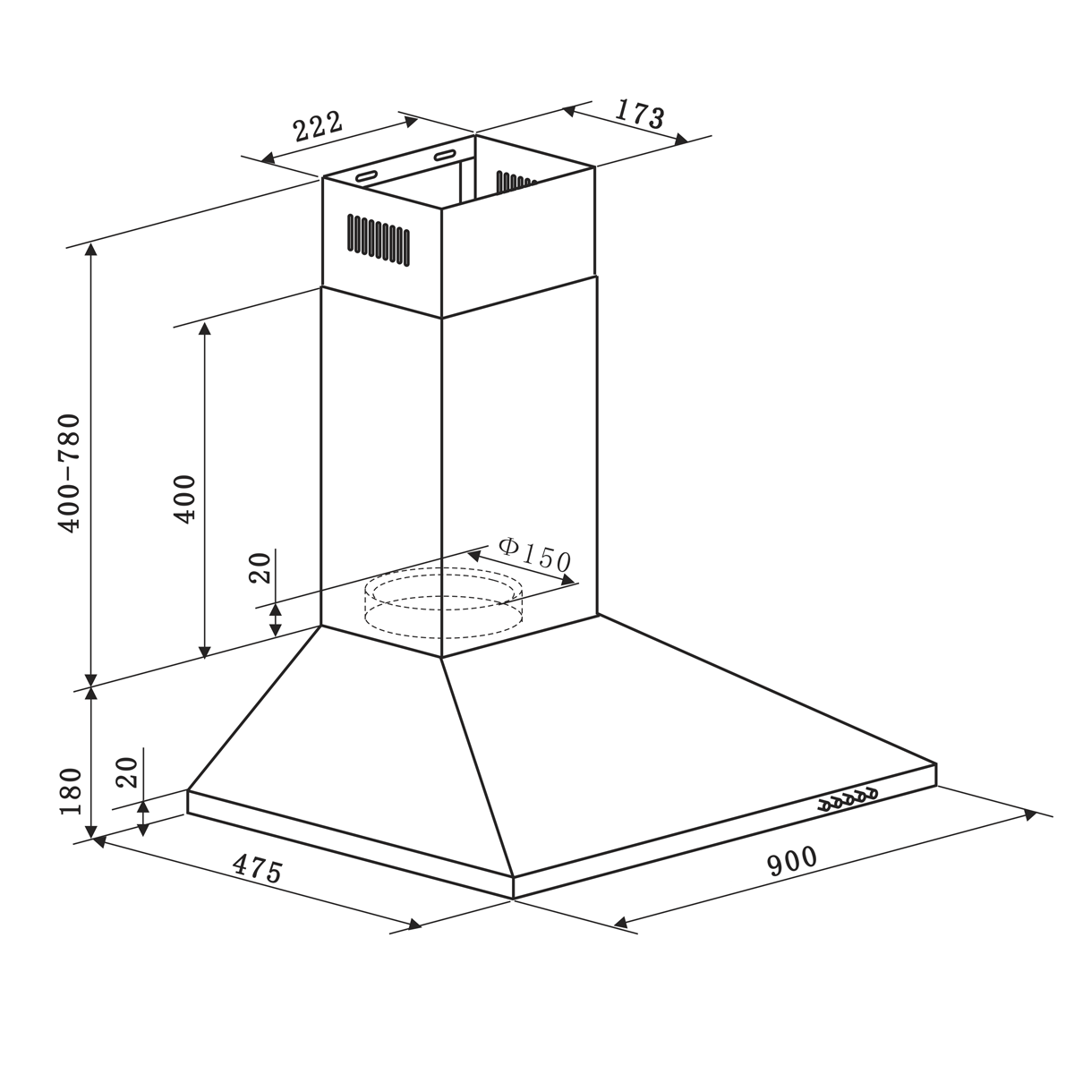 • STANDARD SIZE - 90cm Chimney style cooker hood covers the majority of cookers and hobs.