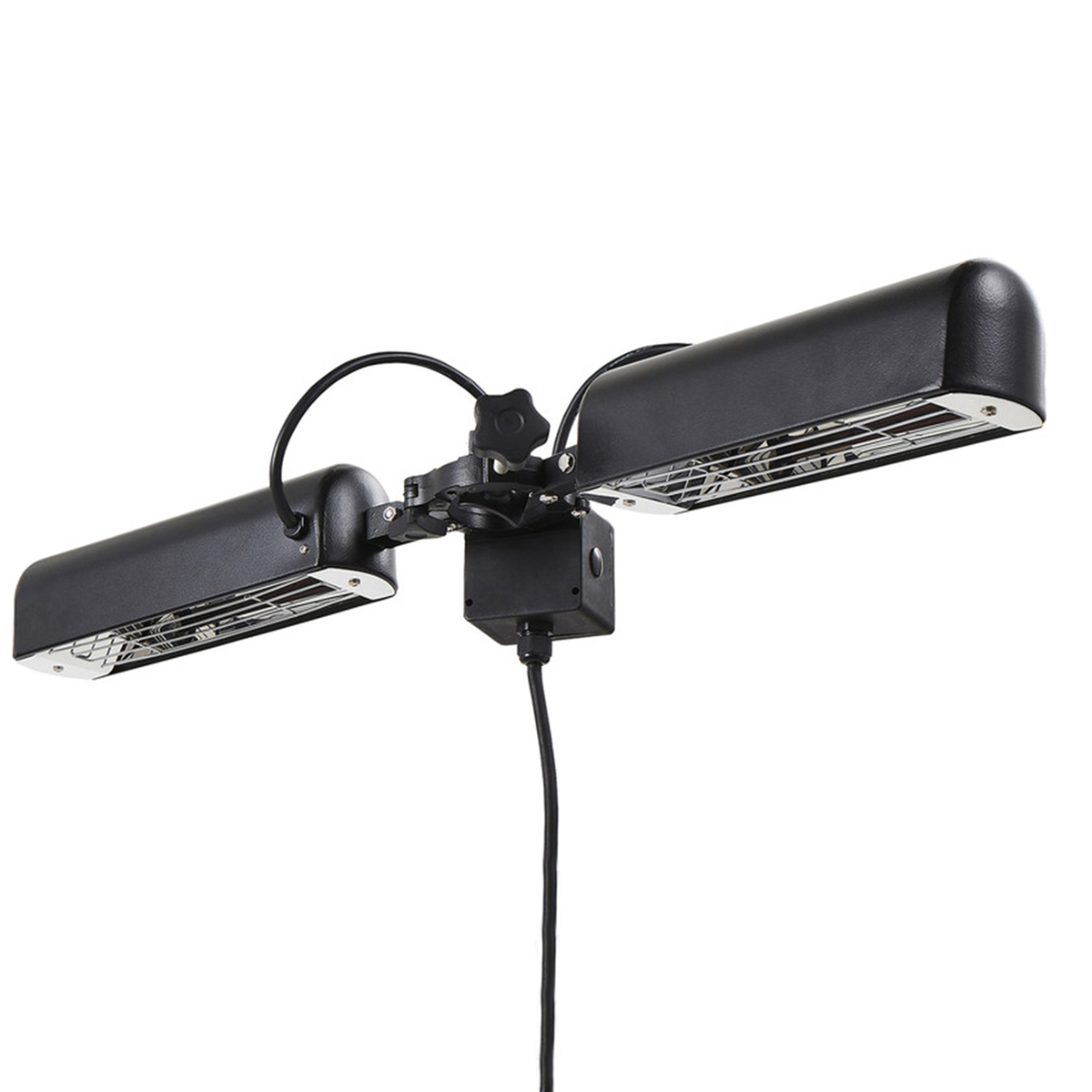 Outdoor infrared heater is the perfect companion for your parasol or gazebo. A totally dry heat, no condensation, gas, fumes or smell. Heats an area of up to 10m². Folding design makes this heater easy to store when not in use. Features extra-long 5m cable.