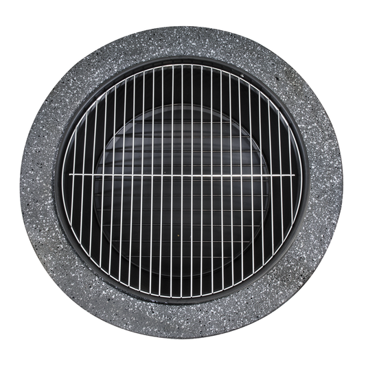 The fire pit is made from MgO (Magnesium Oxide), a weather resistant material which gives you a modern concrete look for your garden. It is built to withstand the elements as it is rust resistant, UV resistant and frost resistant. Being made of MgO instead of a more traditional metal material this fire pit is much lighter and easier to move around your garden and comes with handle holes. Use like a BBQ, place your food on the chrome grill rack above the fire logs and get ready for quick tasty food. Suitable for use with Charcoal or Firewood. Supplied with a safety mesh which prevents sparks or debris from escaping. The included poker can be used to ignite the flame and remove the mesh cover keeping you safe.