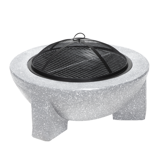 The fire pit is made from MgO (Magnesium Oxide), a weather resistant material which gives you a modern concrete look for your garden. It is built to withstand the elements as it is rust resistant, UV resistant and frost resistant. Being made of MgO instead of a more traditional metal material this fire pit is much lighter and easier to move around your garden and comes with handle holes. Use like a BBQ, place your food on the chrome grill rack above the fire logs and get ready for quick tasty food. Suitable for use with Charcoal or Firewood. Supplied with a safety mesh which prevents sparks or debris from escaping. The included poker can be used to ignite the flame and remove the mesh cover keeping you safe.