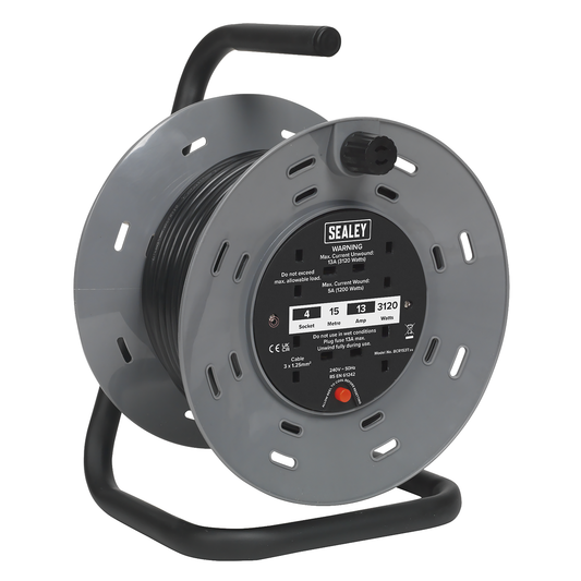 Sealey 15m Cable Reel with Thermal Trip 4 x 230V BCR153T