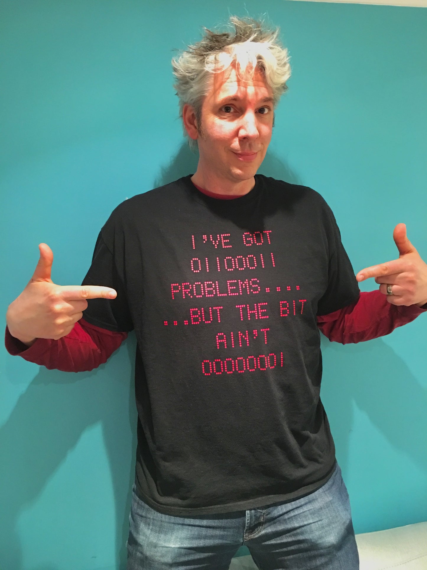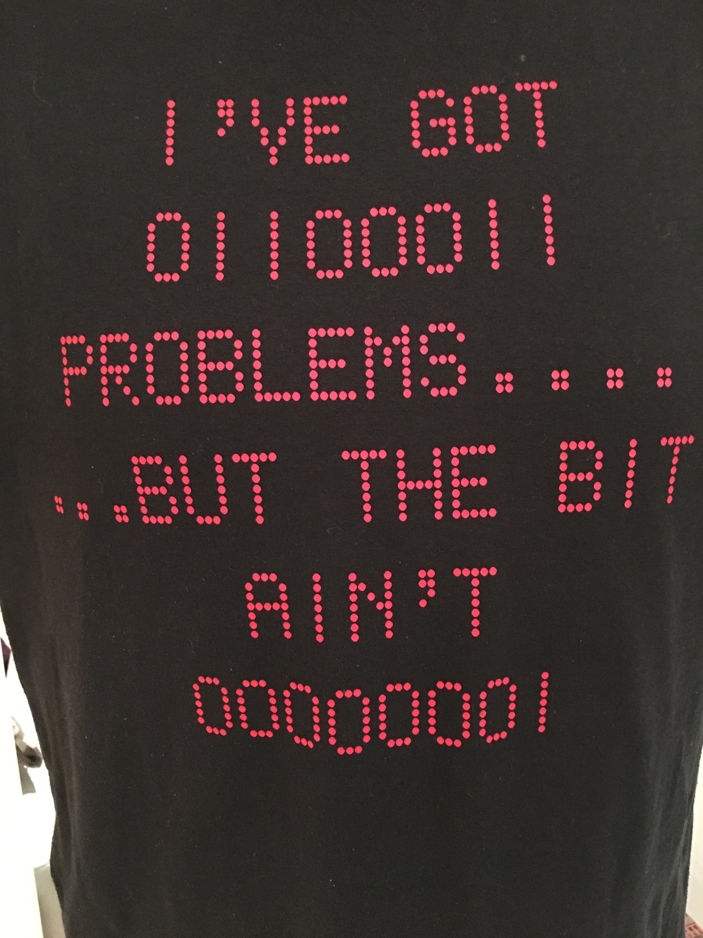 Express your nerd, geek and rapper cool all in one retro stylish T-shirt. A great way to meet new people or feel slightly superior as the binary numbers keep your admirers guessing...