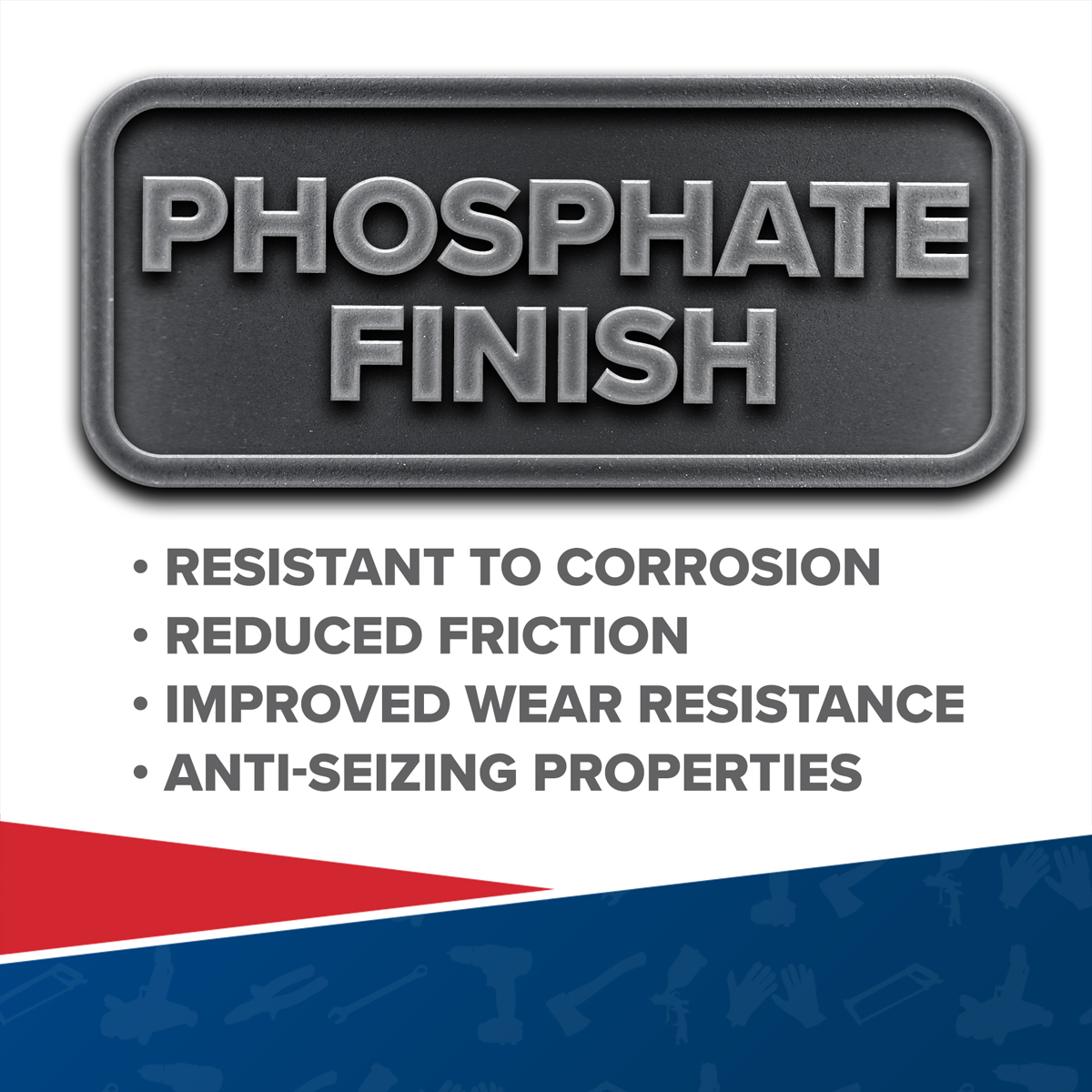 • Phosphate finish for corrosion resistance and comfort grip handles for added control.
