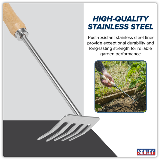 Premier Garden Hand Rake with Short Ash Handle & Stainless Steel Tines GTWH020