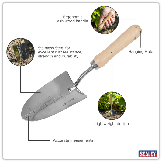Premier Hand Trowel Hand Trowel with Ash Handle & Stainless Steel Blade GTWH003