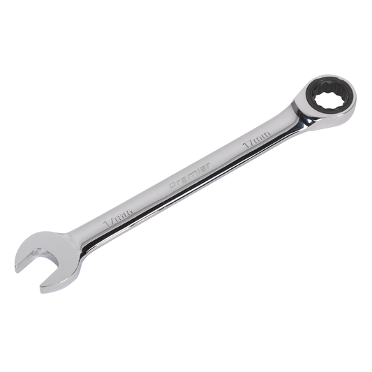 Chrome Vanadium steel combination spanner with 72-tooth, WallDrive®, ratchet ring. Ultra-smooth ratchet action requires only 5° rotation to pick up the next tooth. Ideal for awkward applications.