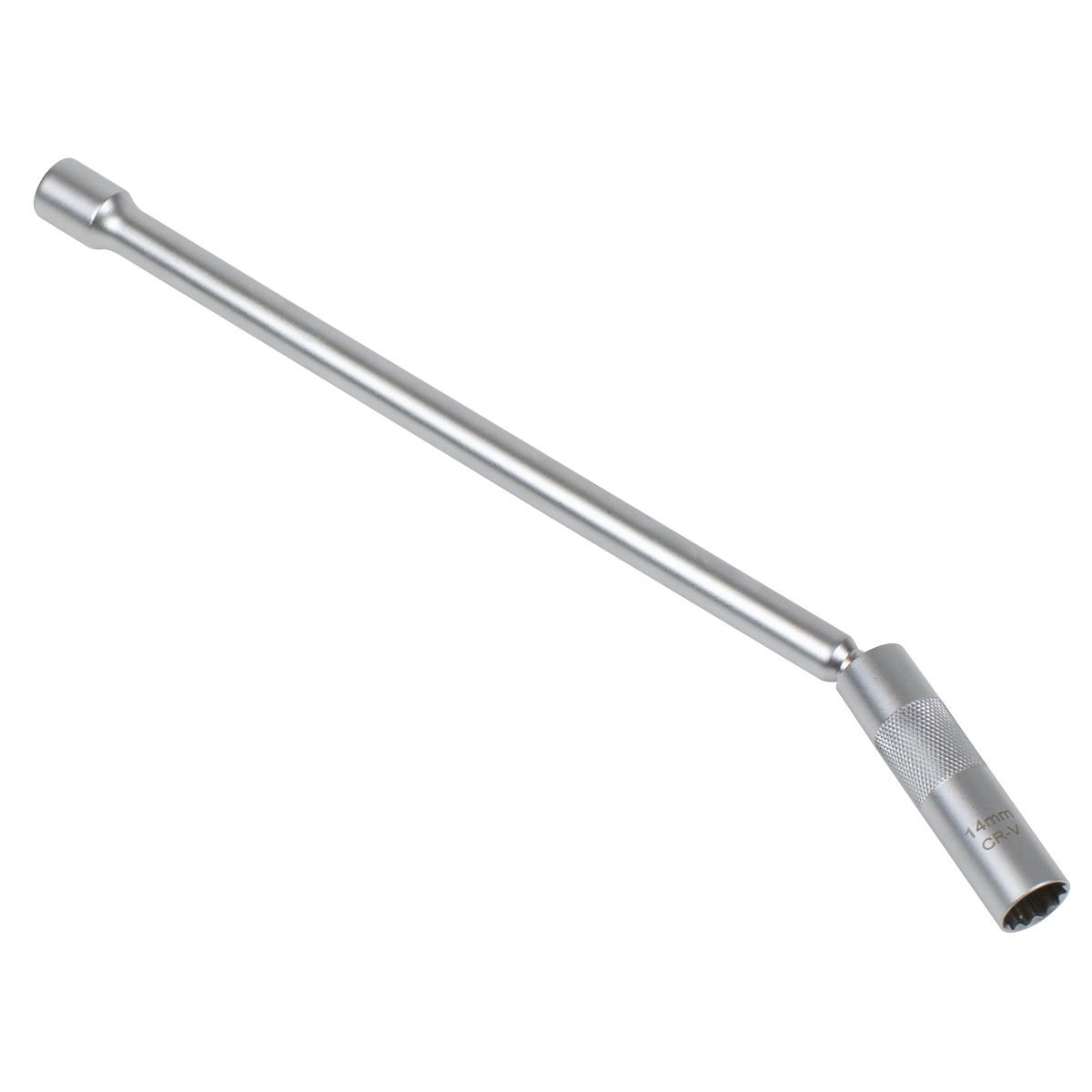 Ideal for spark plugs that are sat down deeper in the engine and have restricted access. Includes an internal magnet to securely hold the spark plug in place during installation or removal. Universal joint with a rotating 360° head which is ideal when space is limited, allowing easier access than a standard socket. Thin wall design is intended for use with limited clearance for the spark plug. Manufactured from Chrome Vanadium that is hardened and heat treated for strength and durability. Standard depth socket 12-point 3/8"Sq drive 14mm. Knurled design for secure grip.