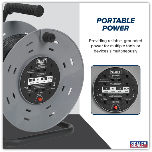 Sealey 50m Cable Reel with Thermal Trip 4 x 230V BCR50