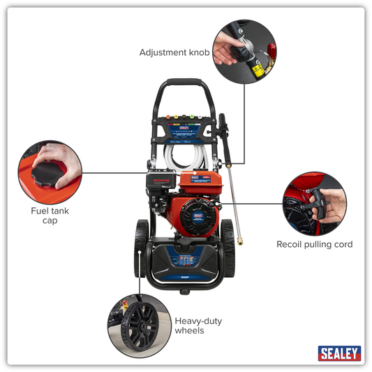 Sealey Self-Priming Pressure Washer 198bar 5.8hp - Petrol PWM2500SP