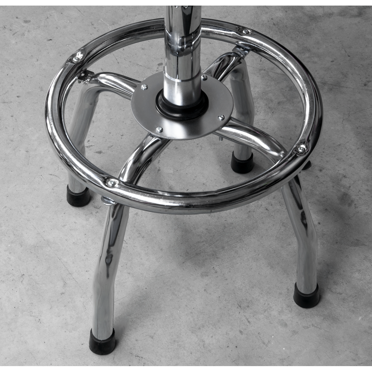 • 4-Legged heavy-duty steel construction with a polished chrome plate finish for corrosion resistance.
