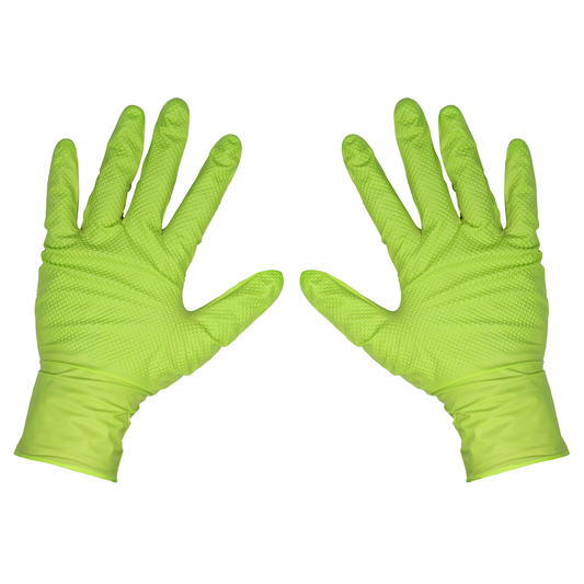 Sealey Diamond Grip Extra-Thick Nitrile Powder-Free Gloves Hi-Vis Green X-Large…