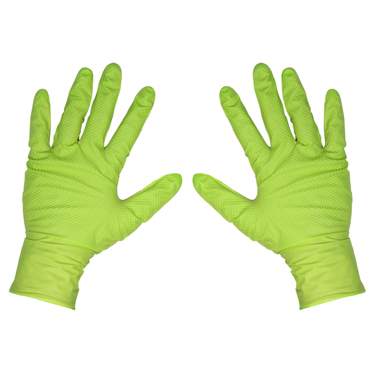 Sealey Diamond Grip Extra-Thick Nitrile Powder-Free Gloves, Hi-Vis Green, Large - Pack of 50 SSP54L